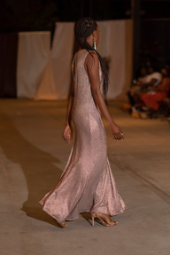 This collection celebrated all the beautiful hues and colors that compliment melanated skin tones. It showcased 2 sets, a daytime look shown above where real-life models displayed looks created just for them. They took to the runway to the tune of Brown-Skin Girls displaying their confidence and loving the skin their in.